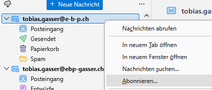 | Deshalb mit der rechten Maustaste auf das neue Konto klicken und dann mit der linken auf Abonnieren.... |